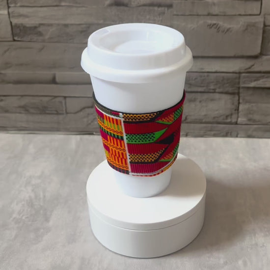 🌍 African Wax Print Cup Sleeve | Orange, Red, Black, Green, White & Yellow | Reusable Coffee Cozy | Eco-Friendly Gift ☕🌿